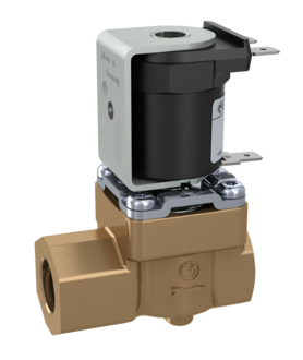 Electrovanne 2/2 en DN 10 pour le pilotage d’eau potable et de fluides physiquement et chimiquement similaires. La vanne est servo-commandée et elle est normalement fermée au repos (NF).