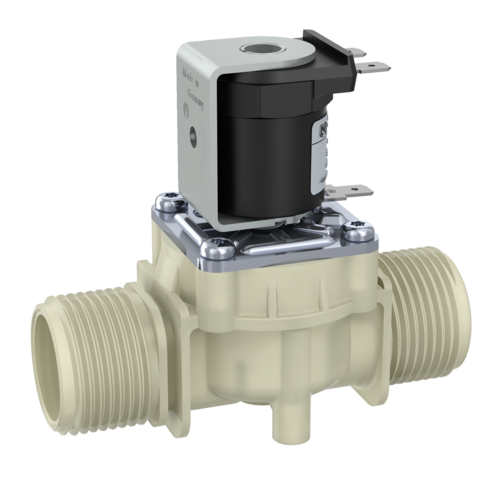 Electrovanne 2/2 en DN 21 pour le pilotage d’eau potable et de fluides physiquement et chimiquement similaires. La vanne est servo-commandée et elle est normalement fermée au repos (NF).