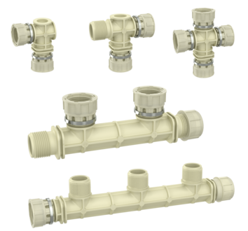 Les manifolds avec trois ou quatre connecteurs sont idéalement compatibles pour n’importe quel type de circuit de distribution d’eau. La taille des connecteurs filetés standard permet l’intégration dans de nombreuses applications. L’installation est facile, grâce à des écrous pivotants amovibles manuellement.